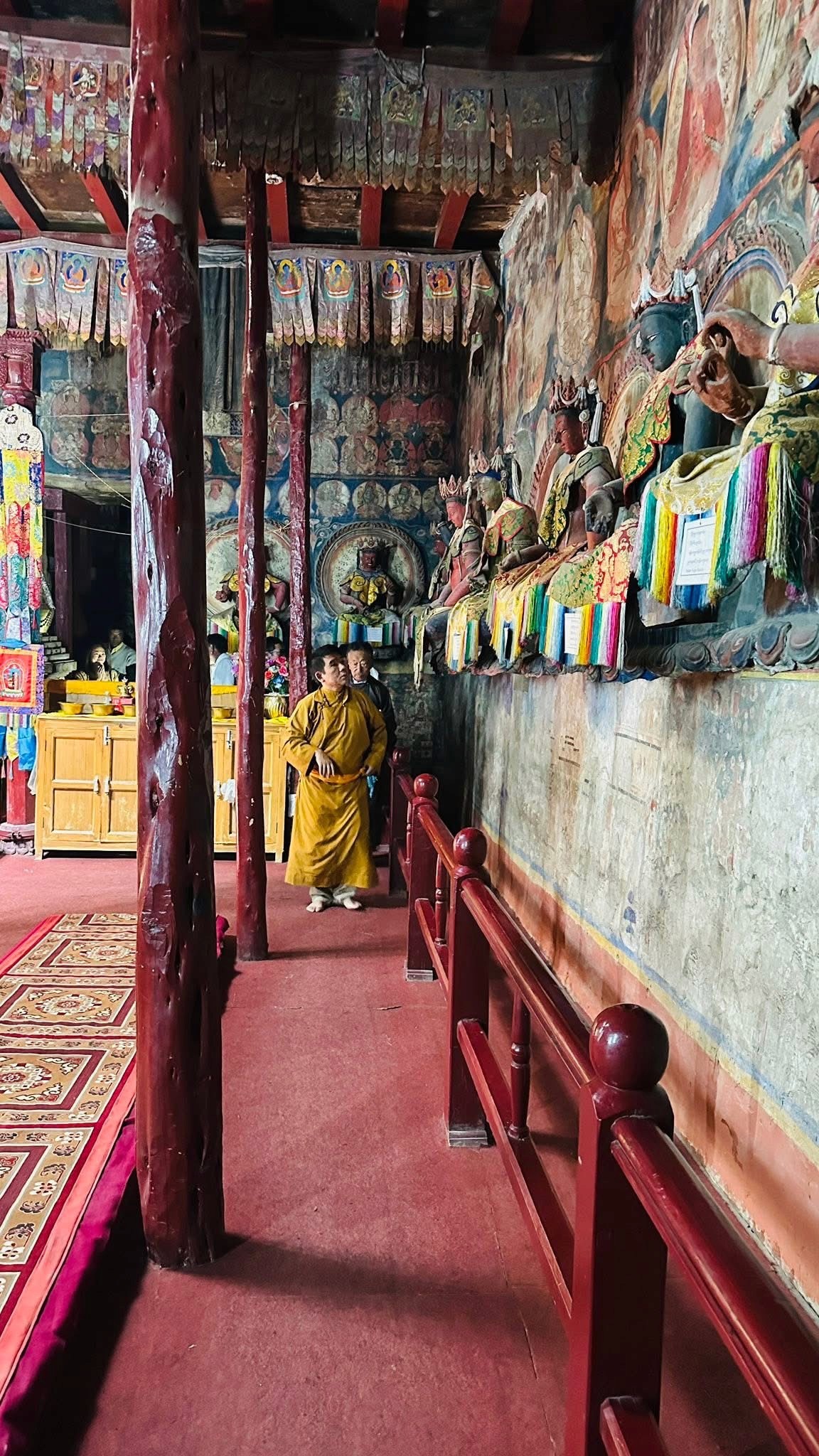 Serkong Tsenshap Rinpoche in the Main Prayer Hall of Tabo Monaster